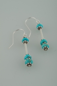 Dangling faceted turquoise earrings, accented with daisy sterling silver spacers. A modern look.