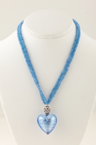 Very cool-looking big blue Murano heart held by two strands of faceted blue quartz rondelles. Measures 17 1/2 inches across and closes with a beautiful sterling silver clasp. Goes everywhere.