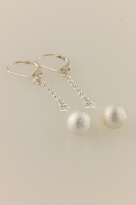 Petite brushed sterling silver teardrops dangling from a slender sterling silver chain. Very attractive.
