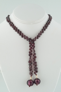 Beautiful Classic Wrapp of high quality garnet briolettes finished with burgundy swirl Murano balls. There are two of these only. Accented in 14k gold. Very rich looking and highly flattering for most complexions. Wear it with a casual top, suit or dress. Highly versatile.