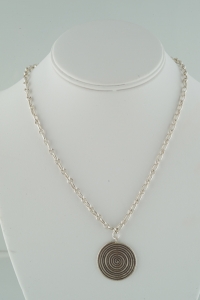 Handmade silver from northern Thailand in a pendant evoking the circle of life. Looks ethnic with great shape and simplicity. Call or email for pricing on longer chain.