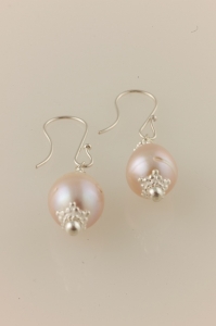Pink Pearl Earrings with Silver Caps