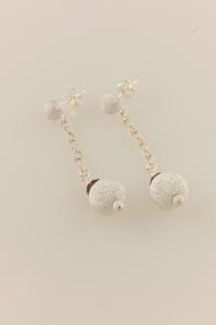 Frosted Sterling Silver Dangling Balls with Garnet