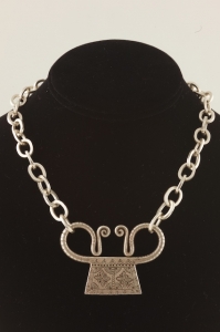 This is the largest of the Spirit Locks. The shape and the presence of the piece itself is notable. It is a statement piece. The solid silver Lock and the 18 inch chain are of hand made silver from northern Thailand.