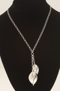 Casual chic in sterling silver chain and two hand hammered, hand made Thai silver leaves.  Layer with other chains or just by itself - it looks great with jeans and dresses up a casual dress or suit.  The chain measures 17 inches across and closes with a sterling silver lobster clasp.