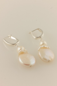 White Coin Pearl Earrings with White Pearls