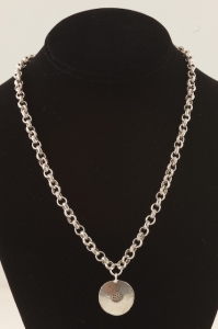 A good thing to have with you at all times. This Om is hand made of silver from northern Thailand, about 98% pure fine silver. It is on an 18 inch chain hand stamped and hand made of Thai silver and closes with a large sterling silver lobster clasp.