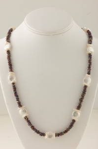 Long is in - although with this necklace, it will never be out! This is a very cool freshwater black pearl and white coin pearl necklace that you can drape over a casual tee, silk blouse or sweater. Measuring 29 inches across and closing with a large, square, very cool sterling silver toggle clasp that you may want to expose from time to time. Very versatile, easy to wear piece.