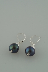 Black Pearl Earrings with Silver