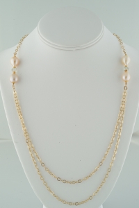 Gold Double Drape with Peach Pearls and Green Amethyst