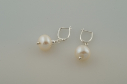 Dainty dangling large white freshwater pearls with sterling silver. Sterling silver lever backs.