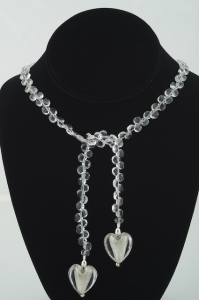 Glistening crystal briolettes in a 24 inch length, end to end. The Murano heart, dangling from sterling silver beads, has a silver foil interior. Simple and elegant."