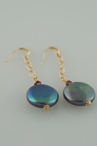 Black Coin Pearl and Garnet Earrings