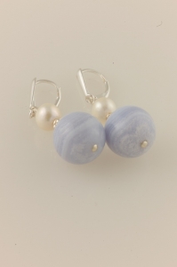 Beautiful quality blue lace agate smooth balls with freshwater white pearls and a touch of sterling silver. Fresh and pretty.