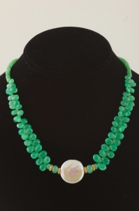 Chrysoprase, 14k Gold and White Coin Pearl Necklace
