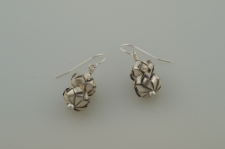 "Intriguing basketweave from the Karen tribe in Northern Thailand. Both beads are handmade, 99% pure fine silver. The perfectly wrapped little round packages are set between two tiny sterling silver balls on a sterling ear wire. "