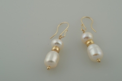 Two large white freshwater pearls with 14k gold complement. 14k gold wire.
