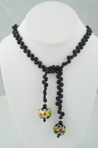 Beautiful faceted onyx briolettes in a 24 inch length, end to end, accented with richly colored black and gold Murano beads.