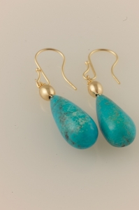 I have two pairs like these, which are truly beautiful in shape and in fabulous turquoise color. The turquoise is mined in Arizona and cut in India. One of my new faves....