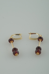 An elegant yet modern drop earring of very high quality garnet rondelles with 14k gold accents.