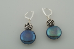 Black Coin Pearl Earrings with Silver