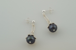 Beautiful black freshwater pearl dangling from bright sterling silver chain. On a sterling silver post.