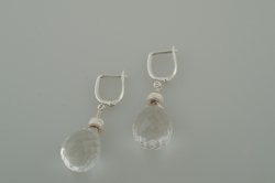 Beautiful round crystal faceted teardrops with a sterling silver rondelle. Dangling from sterling silver lever backs.
