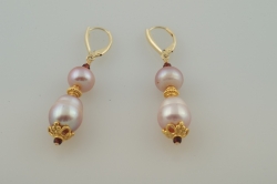 Double Pink Pearl Earrings with Garnet