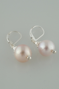 Very pretty in pink pearl earrings, framed in sterling silver, not "girly" at all -but soft and modern.