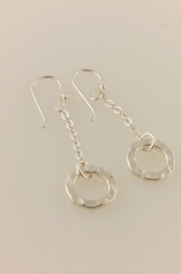 Hand hammered, hand made Thai silver circles dangling from a delicate sterling silver chain. Sterling silver earwire.