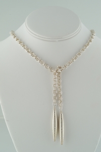 I love this necklace and made myself one. The double link chain is so comfortable to wear and the look is very sleek and cool. This one doesn't stay in place as well as the others, so you may find yourself playing with it a bit - I find that it's half the fun of wearing it.