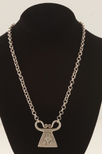 For a complete story of the Spirit Lock, please refer to the Talisman Collection (In the middle of the Home page). This Spirit Lock, of hand made silver, has an elegant shape and combined with the 18 inch hand made silver chain from Thailand, makes a statement of aesthetic spirituality. The chain closes with a large sterling silver lobster clasp.
