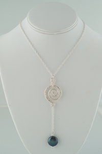 I created this necklace from a beautiful sterling silver clasp that I found in my Arizona wanderings. The more I looked at it, the less it looked like a clasp and the more it looked like a mesmerizing focal point of interest and attraction. See who you can attract with it!