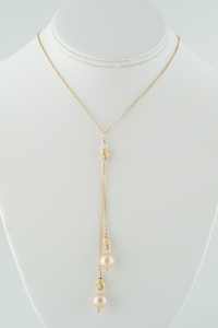 Delicate 14k gold chain with beautiful freshwater natural peach pearls, high quality faceted aquamarine rondelles in my Bolo style. Casual or dressy, chic, modern.
