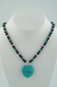 Onyx and Silver Necklace with Turquoise Heart