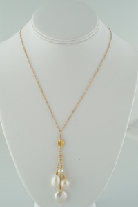A modern take on pearls and gold. Absolutely fun to wear. Long 19 inch chain with a 14k gold lobster clasp with a dangling cluster of freshwater white pearls framed in solid 14k gold. Great with any casual look or sophisticated night time looks.