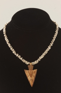 Channel your inner explorer with this hand carved Arrowhead bone from Indonesia. The cool chain is made from small hand-stamped, hand made silver beads from Thailand. The neckwear measures 17 inches across and closes with a large sterling silver lobster clasp. Altogether a very sharp, cool look.Call or email for pricing on a length of your choice.