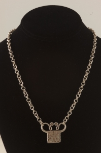 Small spirit lock of hand made solid Thai silver on a hand stamped, hand made Thai silver chain. Chain measures 17 inches across and closes with a very large sterling silver lobster clasp. Please read about the spirit lock in the front page of the Talisman Collection. Eastern religion and spiritual practices are seductive to us Westerners - and bear closer examination and study. In the meantime, enjoy the benefits.......Call or email for pricing on a length of your choice.
