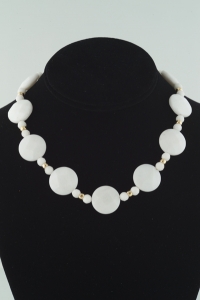 This White Jade Necklace is the essence of cool. Really the perfect addition for any Spring or Summer dress or skirt outfit, day or night. Feminine with substance and style. Lovely round faceted white jade with 14k gold. Closes with a 14k gold toggle clasp. Tremendous wearability.